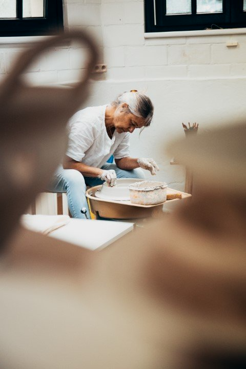 Gedurende 8 wekelijkse lessen (telkens sessies van 3 uren), leer je de eigenschappen van klei kennen, kneden, centreren, openen, optrekken afdraaien en glazuren.